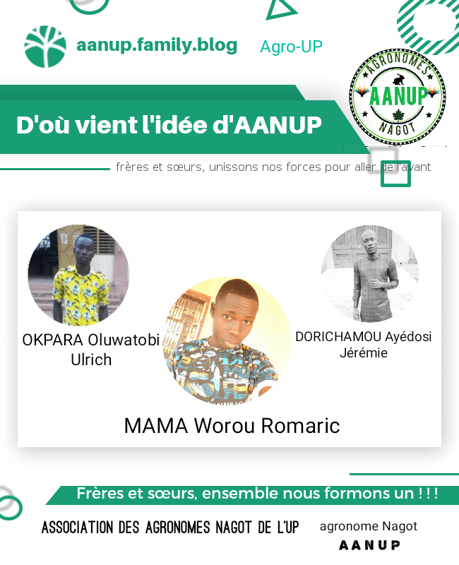 L’AANUP n’est pas la première association à vocation sociale.En 2019, la communauté des Nagot est fondée à l’initiative de trois étudiants Romaric MAMA, DORICHAMOU Jérémie et OKPARA Ulrich dans le but d’instaurer une union durable entre les Nagot. But qu’elle n’atteindra pas puisque le bilan des prémieres notes affichées est très faible chez les Nagots . Un échec qui donnera naissance à l’AANUP, 10 Octobre 2020